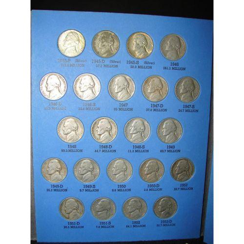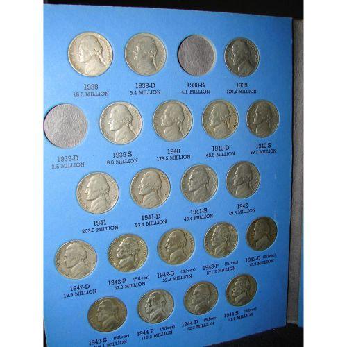 ALBUM OF JEFFERSON NICKELS. 1938 to 1961. Missing 1938-S & 1939-D.