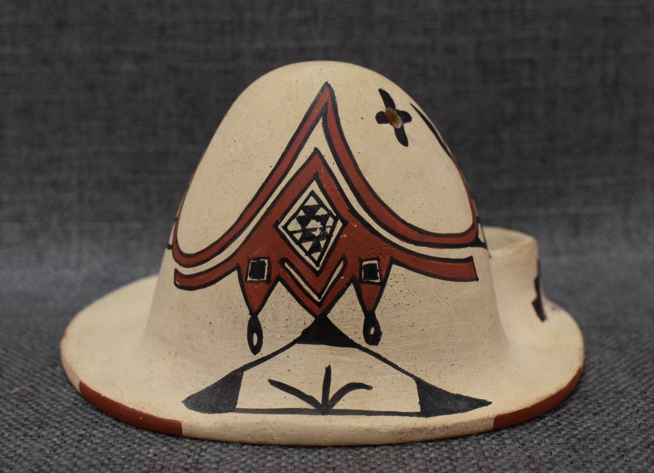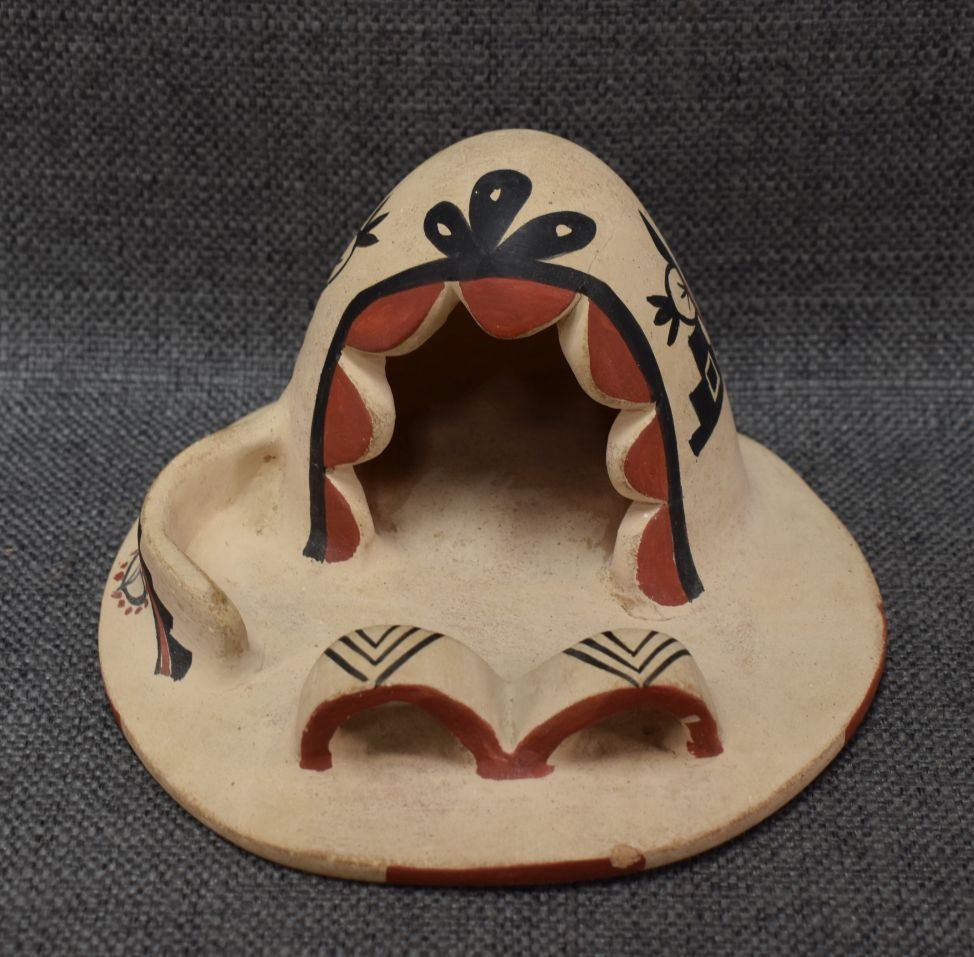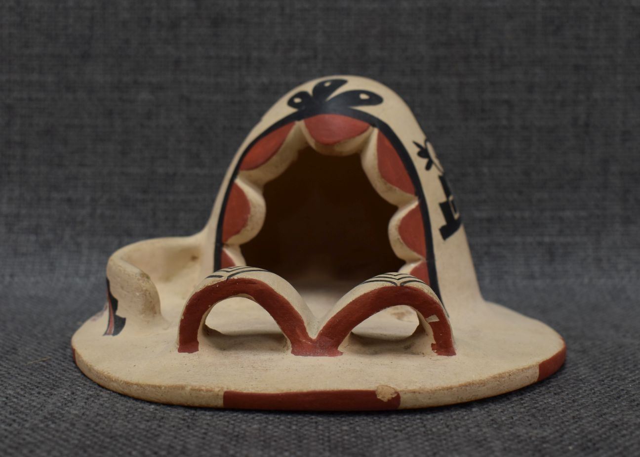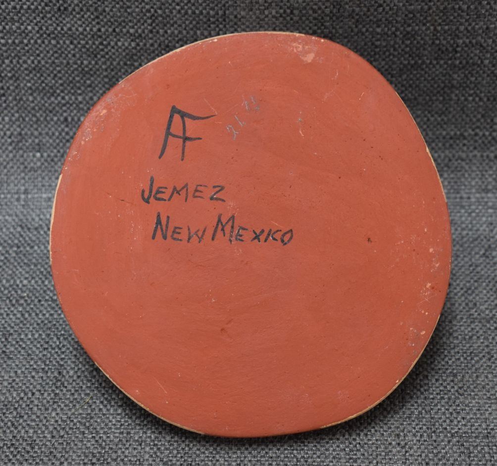 1980-90's Jemez Indian hand coiled and polychrome painted fireplace signed AF 3.5" x 5.75"