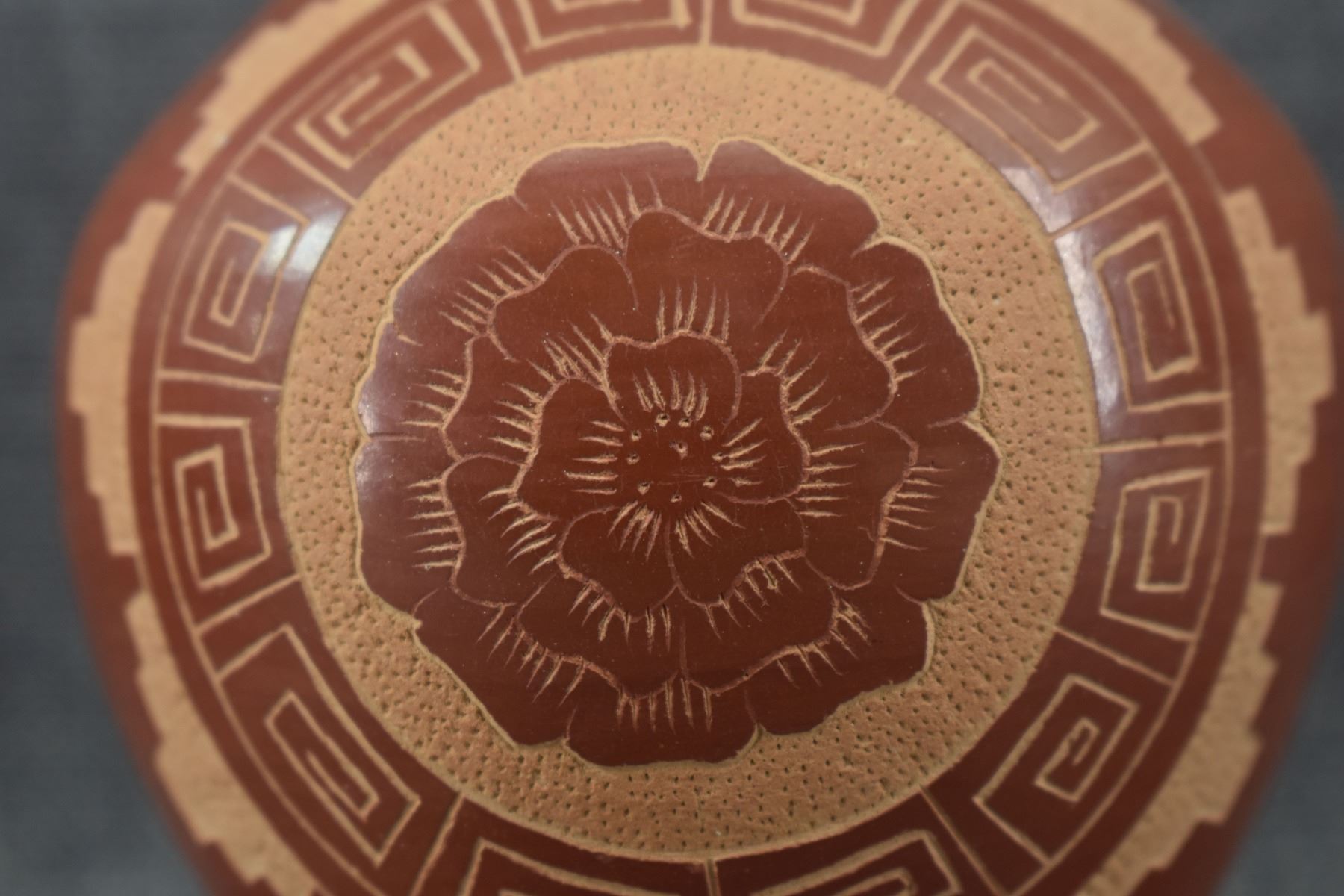 1990's hand coiled painted and sgriffito design depicting butterfly , signed B Tafoya. 5'' x 4''