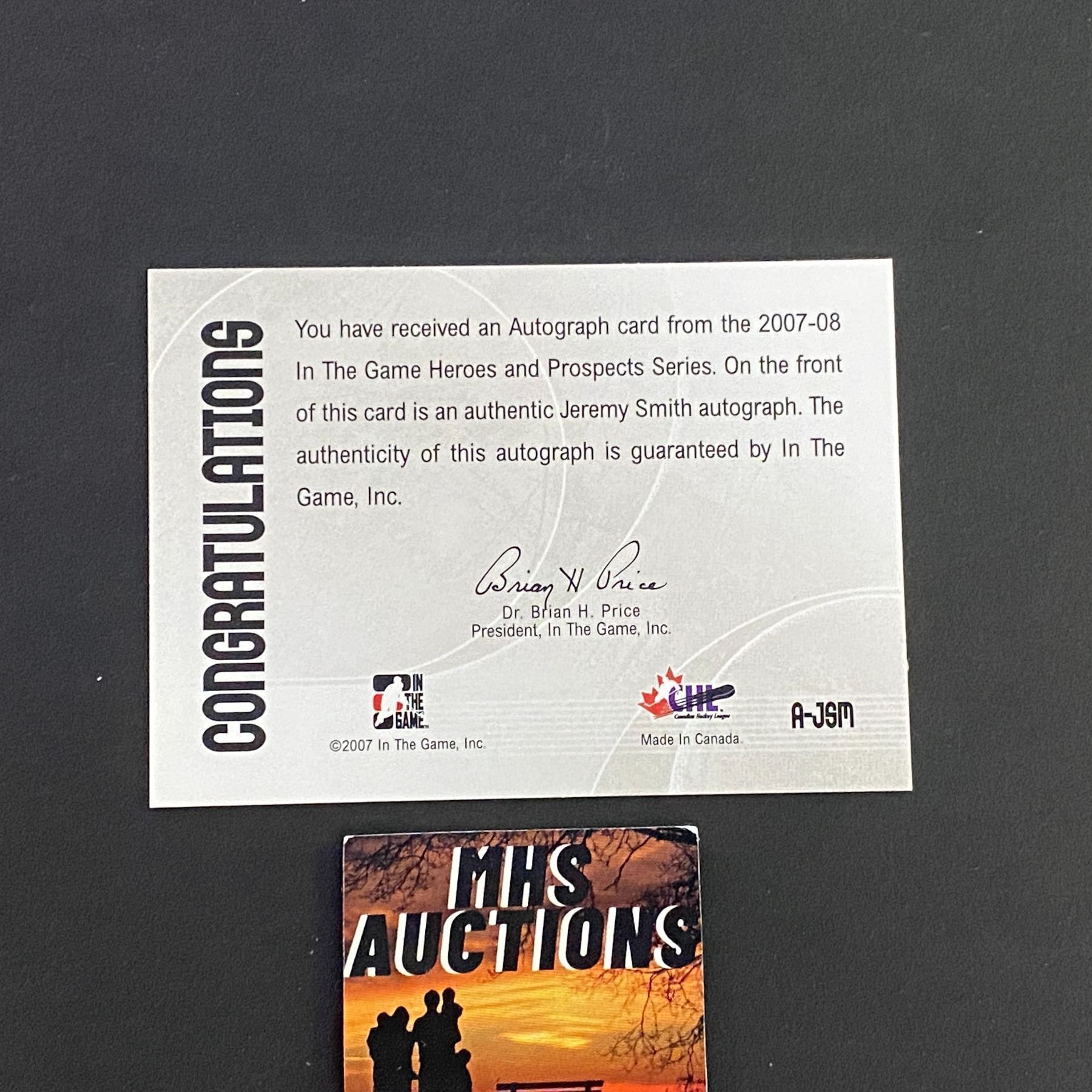 JEREMY SMITH 2007 IN THE GAME AUTOGRAPH HOCKEY CARD