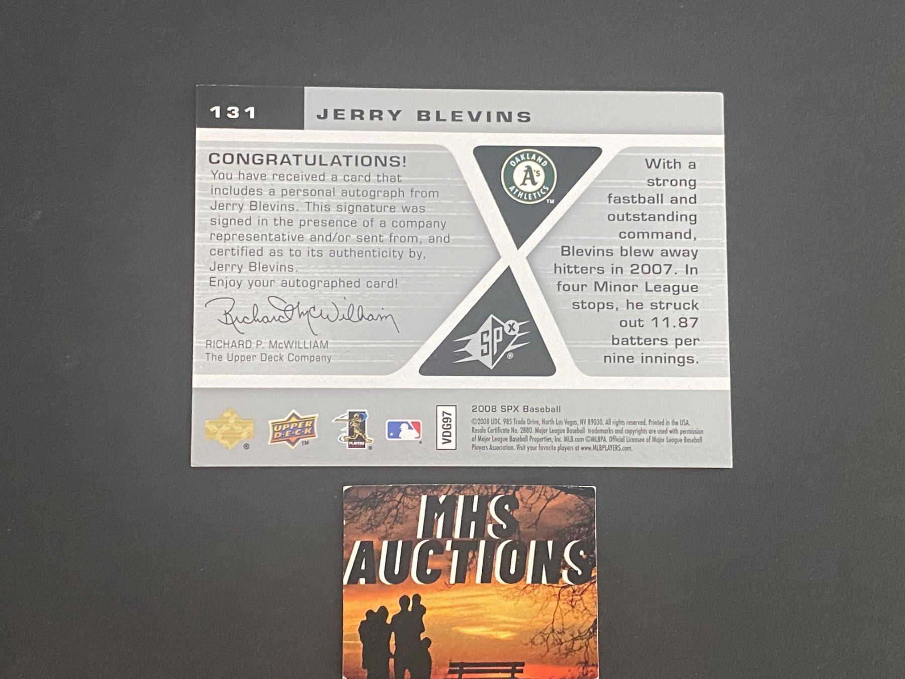 JERRY BLEVINS 2008 SPX BASEBALL AUTOGRAPH CARD
