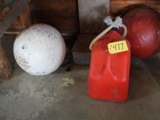 JERRY CAN C/W PUMP, WHITE & RED WOOD BALLS