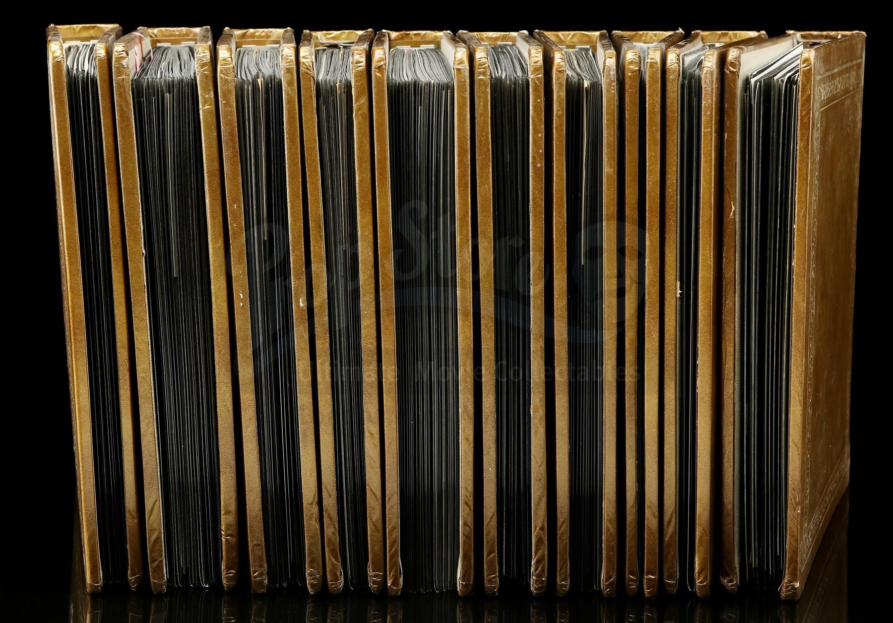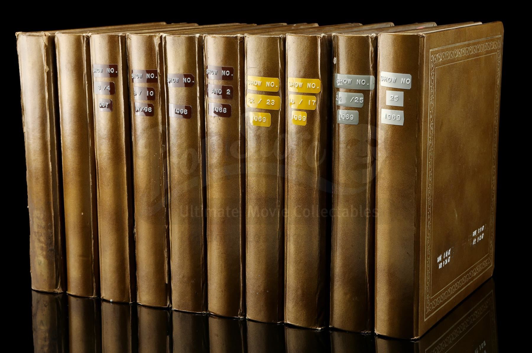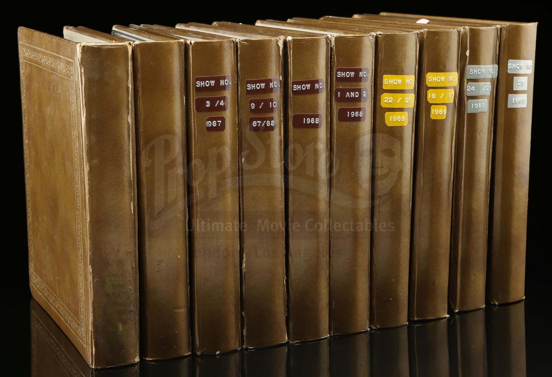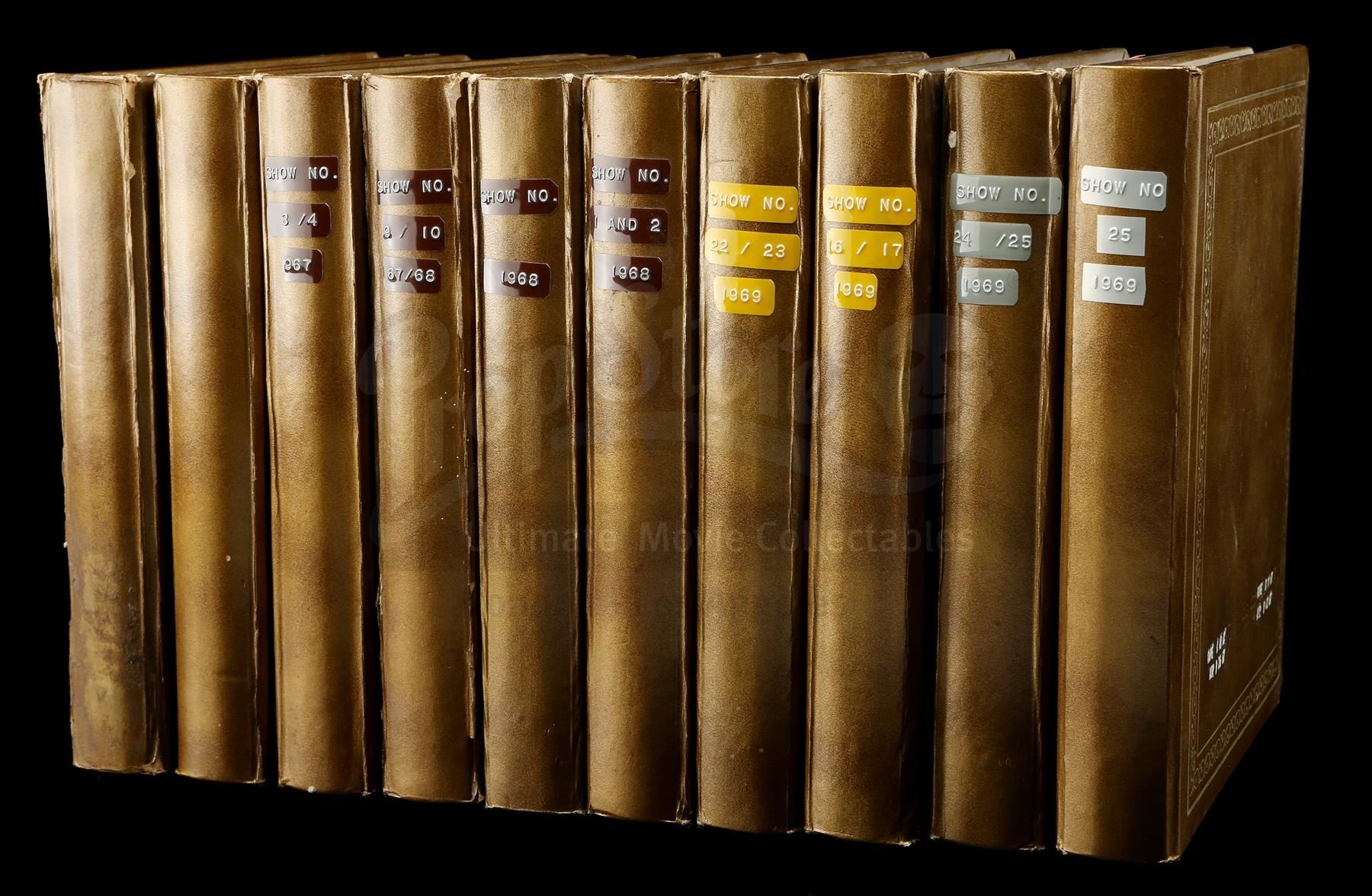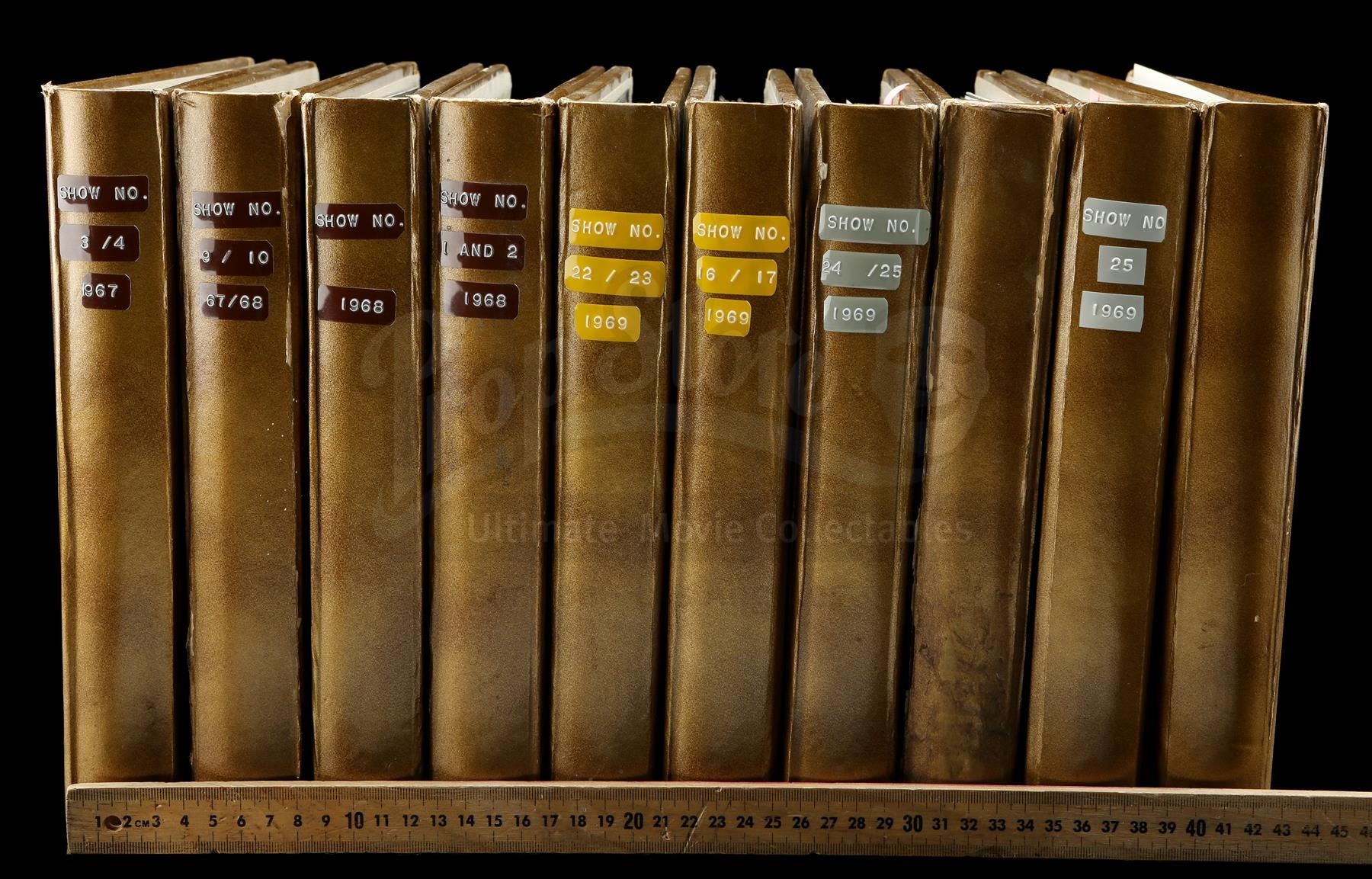 This archive consists of 10 spiral photo binders containing colour-film contact sheets from throughout the show's production. Divided by episode and ranging from 10 to 48 pages per book, the contact sheets are printed on glossy photo paper and depict various skits and musical numbers, as well as behind-the-scenes images. Each sheet is dated and stamped "Jerry Lewis Prods Inc." on the reverse. The binders exhibit various signs of age and handling. Dimensions: 39.5 cm x 30.5 cm x 26 cm (15 1/2" x 12" x 10 1/4")