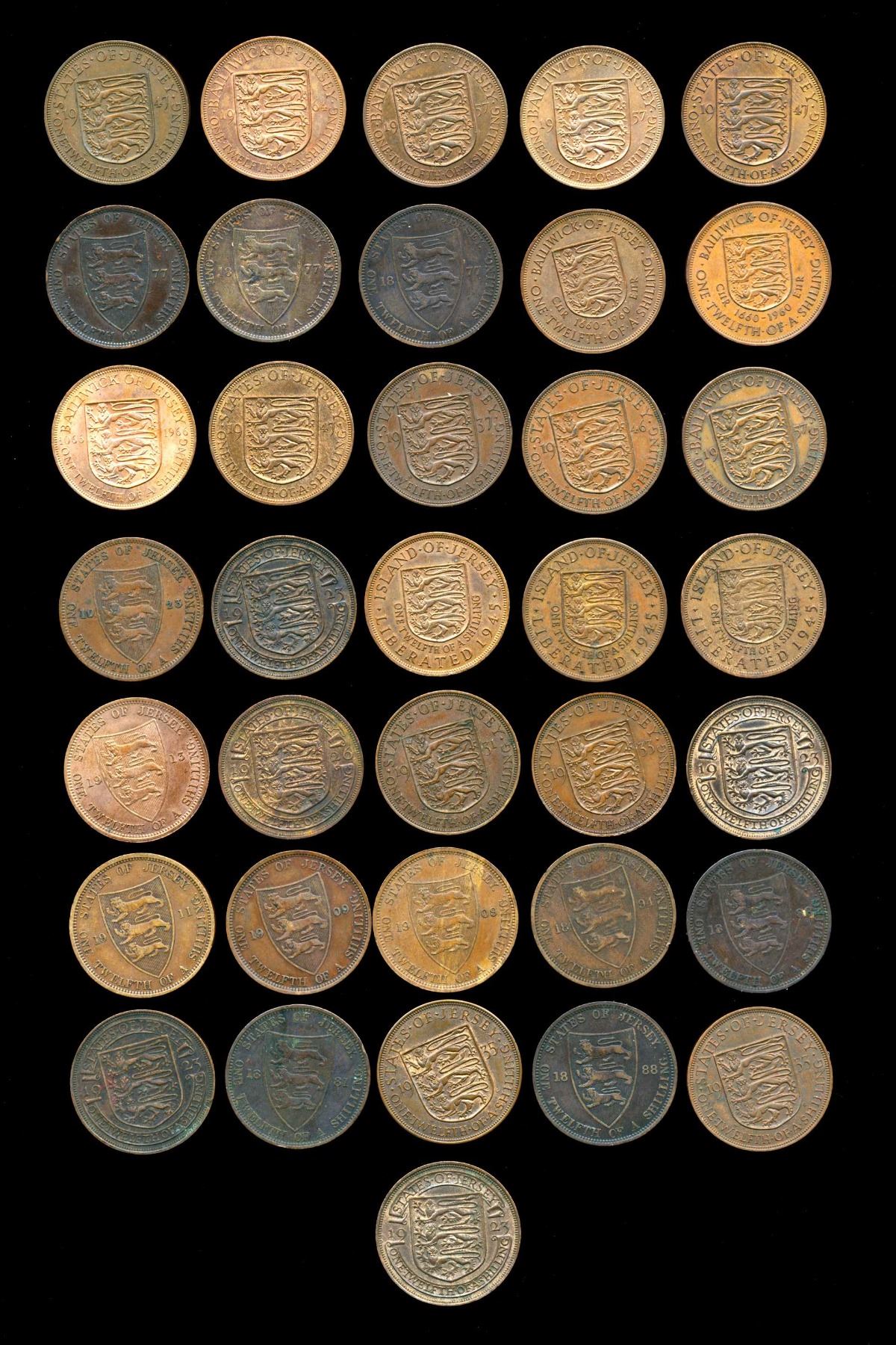 JERSEY 1877-1966. A Mixed Lot of 36 Copper Coins Very Fine-Unc