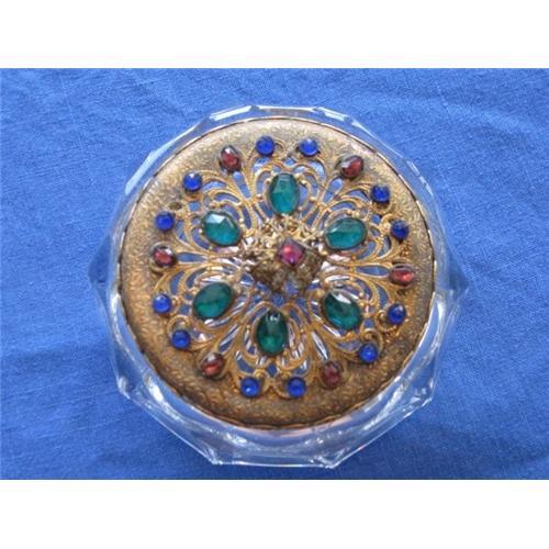 <tr><td>Title:JEWELED Powder JAR - Vintage -</td></tr>