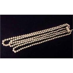 HALSCOLLIER, ODLADE PÄRLOR I TRE RADER, DOSERADE 4-7 M.M, SILVERLÅS