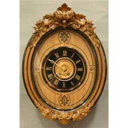 VÄGGUR, VALNÖT, OVAL FORM, SKUREN BLADDEKOR I KRÖN OCH BOTTEN, 1800-TALETS SENARE DEL, H66, B47