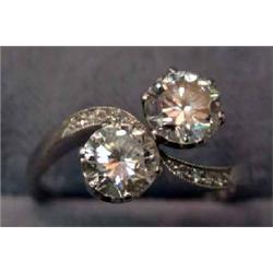 RING, S.K TVILLINGRING, PLATINA, 2 BRILJANTER 2 CT SAMT 8 MINDRE I SKENAN