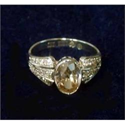RING, 18K VITGULD MED COGNACSFÄRGAD BRILJANT CA. 1,50 CT SAMT EN MÄNGD MINDRE CA 0,50 CT
