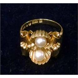 RING, 18K MED TVÅ ODLADE PÄRLOR, ABJ STOCKHOLM 1951 (6G)