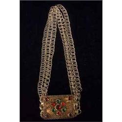 HALSLÅS MED TRE KEDJOR SILVER, FÄRGADE STENAR, FILIGRANDEKOR, ALLMOGETYP, J. DELOMYN, MALMÖ 1907
