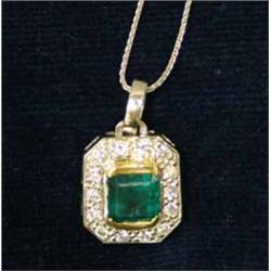 HÄNGE 18K, TRAPPSTEGSLIPAD SMARAGD 1,7 CT SAMT BRILJANTER 0,56 CT, SMYCKEKEDJA MEDFÖLJER