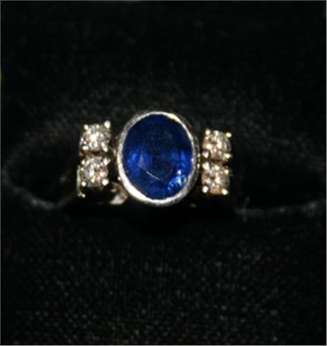 RING, 18K VITGULD MED FASETTSLIPAD SAFIR 1,88 CT (SPRICKA) SAMT BRILJANTER 0,30 CT