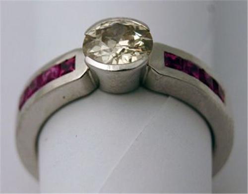RING 18K VITGULD MED BRILJANT 1,10 CT LIGHT YELLOW SAMT ROSA SAFIRER 0,64 CT, SPECIALBESTÄLLD STOCKHOLM 2002
