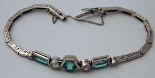 ARMBAND 18K VITGULD MED FASETTSLIPADE SMARAGDER CA 1,10 CT SAMT BRILJANTER CA 0,50 CT, IMP. AV J PETTERSSONS EFTR. STOCKHOLM 1929