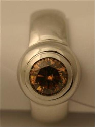 RING, 14K VITGULD MED BRILJANT CA 0,95 CT, COGNAC P1