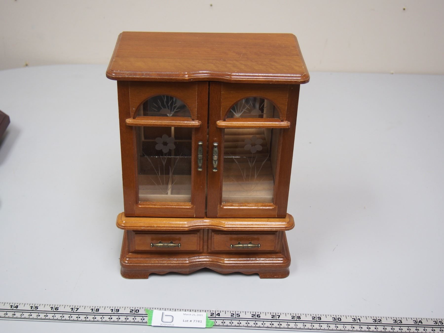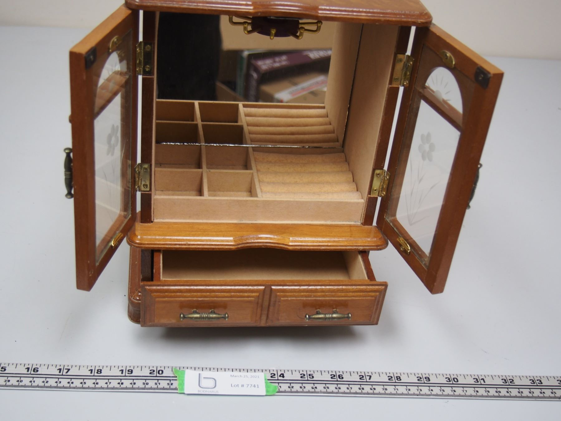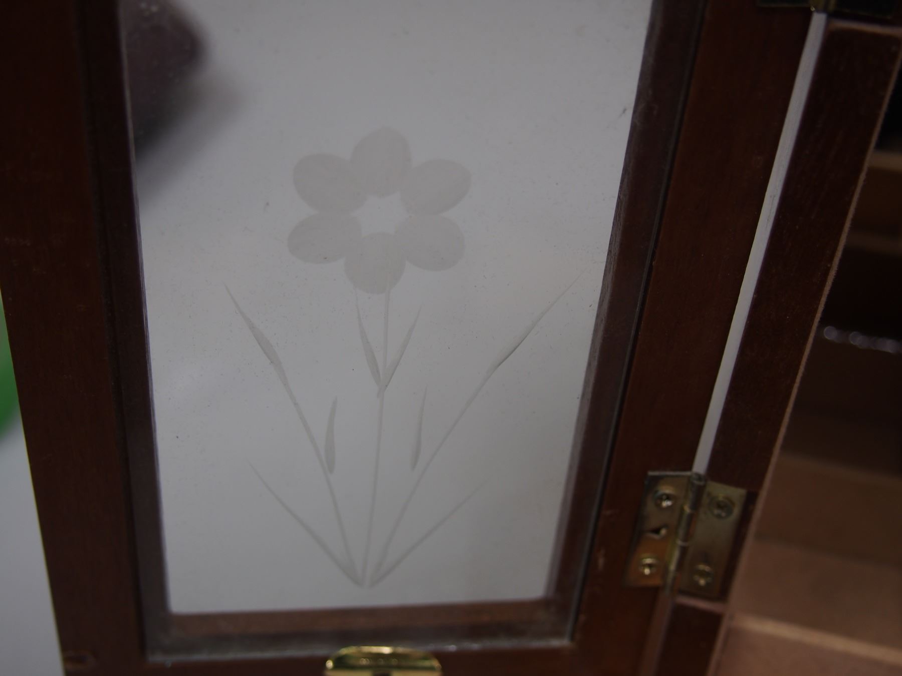 JEWELRY BOX DISPLAY CABINET (8 1/2 X 11 1/2 IN HIGH) ETCHED GLASS