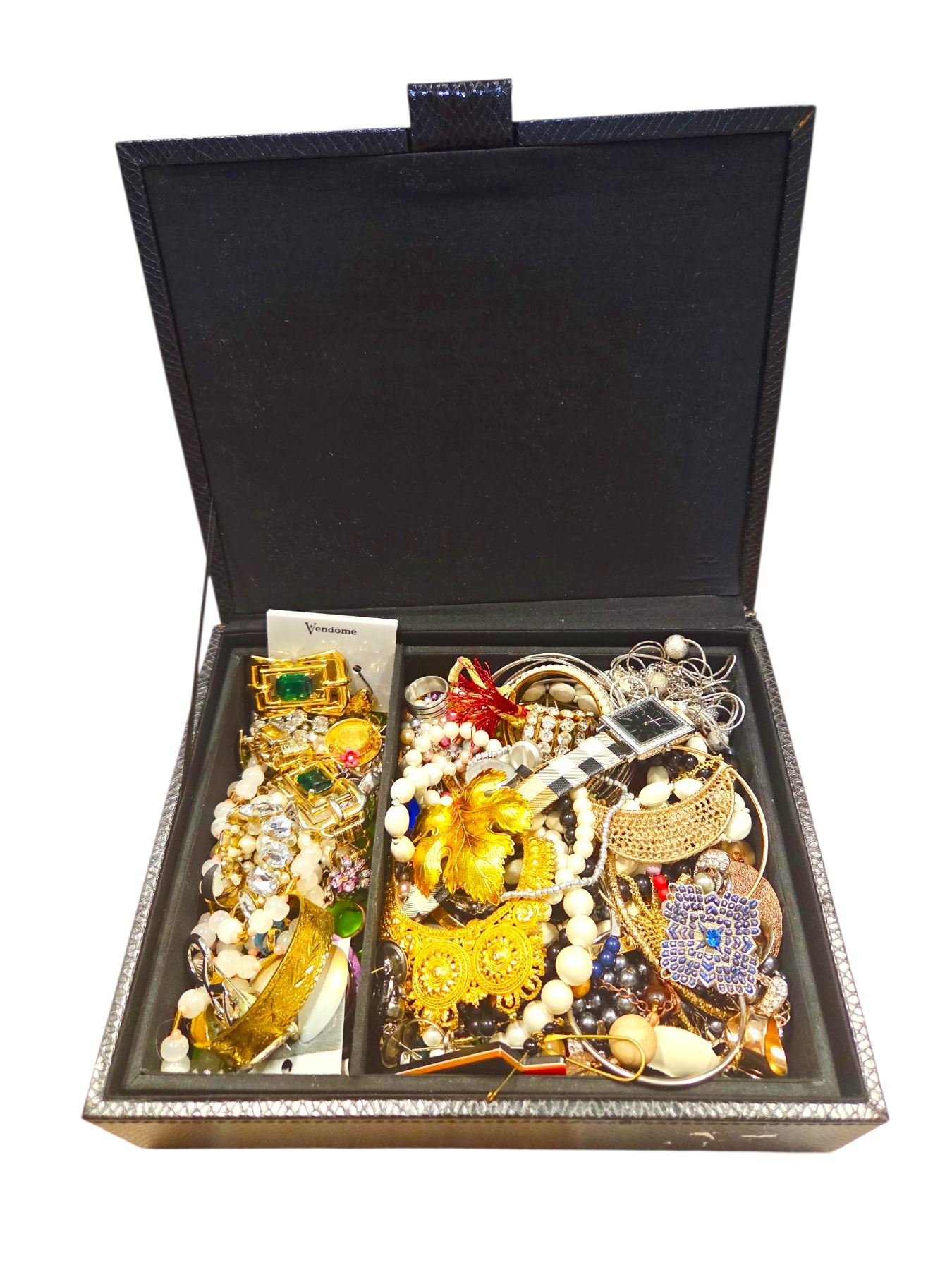 JEWELRY BOX FULL OF JEWELRY VINTAGE AND NEWER