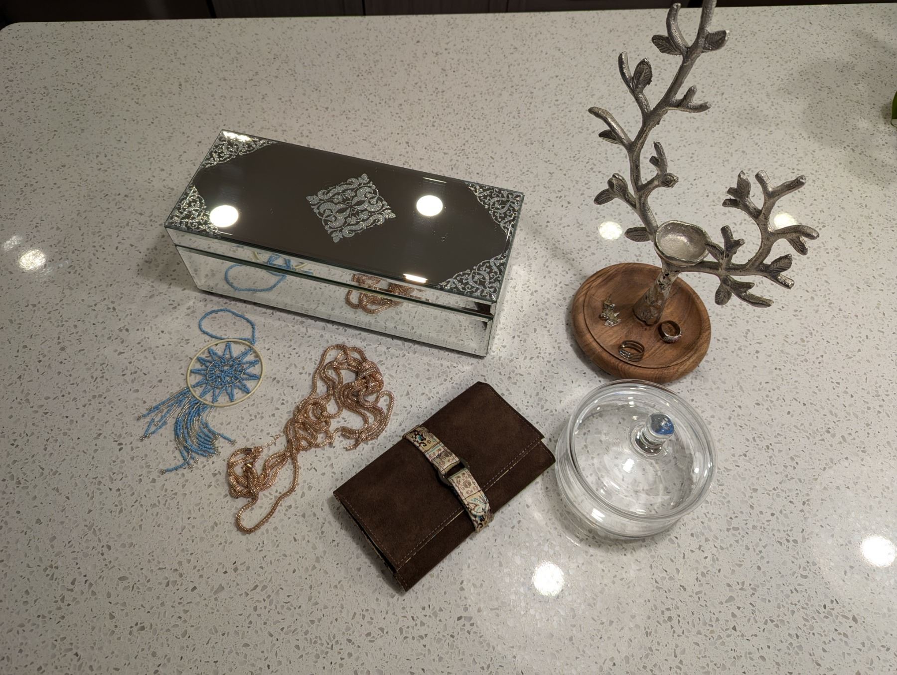 JEWELRY BOX, TREE AND TRAVEL JEWELERY BAG