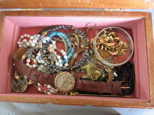 JEWELRY BOX W/ CUSTOM JEWELRY AND WATCH