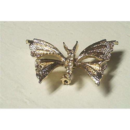 I am featuring at today's auction, a beautiful Butterfly Pin, signed GERRY'S. Lovely designed with outspread wings. The main body features 5, clear rhinestones. The pin closure on the back is securely riveted. Beatifully made with outstanding features. This lovely butterfly pin measures 1 1/2 inches tall by 2 inches wide. Signed GERRY's, and in Excellent condition.