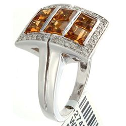 18K White Gold Jewelry 2.08ctw Citrine & Diamond Ring