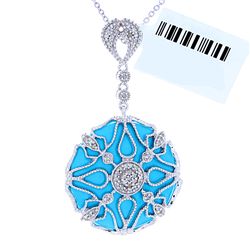 14K White Gold Jewelry 10.47ctw Turquoise & Diamond Pendant