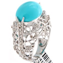 14K White Gold Jewelry 5.73ctw Turquoise & Diamond Ring
