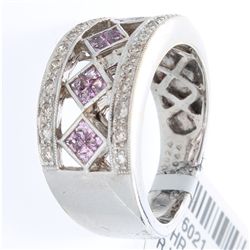 14K White Gold Jewelry 0.68ctw Pink Sapphire & Diamond Ring