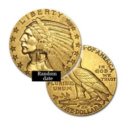 $5 Indian Gold Coin - Half Eagle - 1908 to 1929 - Random date
