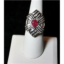 LADY'S 14K WHITE GOLD RING WITH 1 PEAR MIXED CUT RUBY AND NUMEROUS CHANNEL SET BAGUETTE CUT DIAMONDS. DIAMONDS: 2.85CTW CLARITY: SI-1 TO I-2 ...