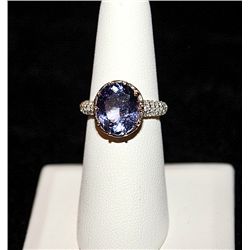 14K GOLD RING WITH 1 OVAL CUT TANZANITE AND 44 ROUND FULL CUT DIAMONDS. DIAMONDS: 0.57CTW CLARITY: I1-I2 COLOR: G-H TANZANITE: 5.13CTW CLARITY: