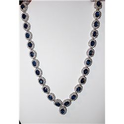 LADY'S 14K WHITE GOLD NECKLACE WITH 25 OVAL MIXED CUT BLUE SAPPHIRES AND 594 ROUND BRILLIANT CUT DIAMONDS. DIAMONDS: 6.00CTW CLARITY: I-1/I-2 ...
