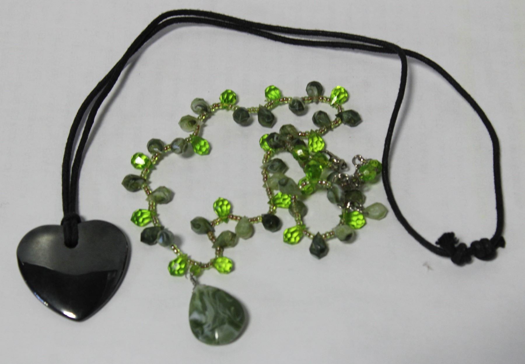 JEWELRY HEART LOCKET, GREENISH NECKLACE & STONE