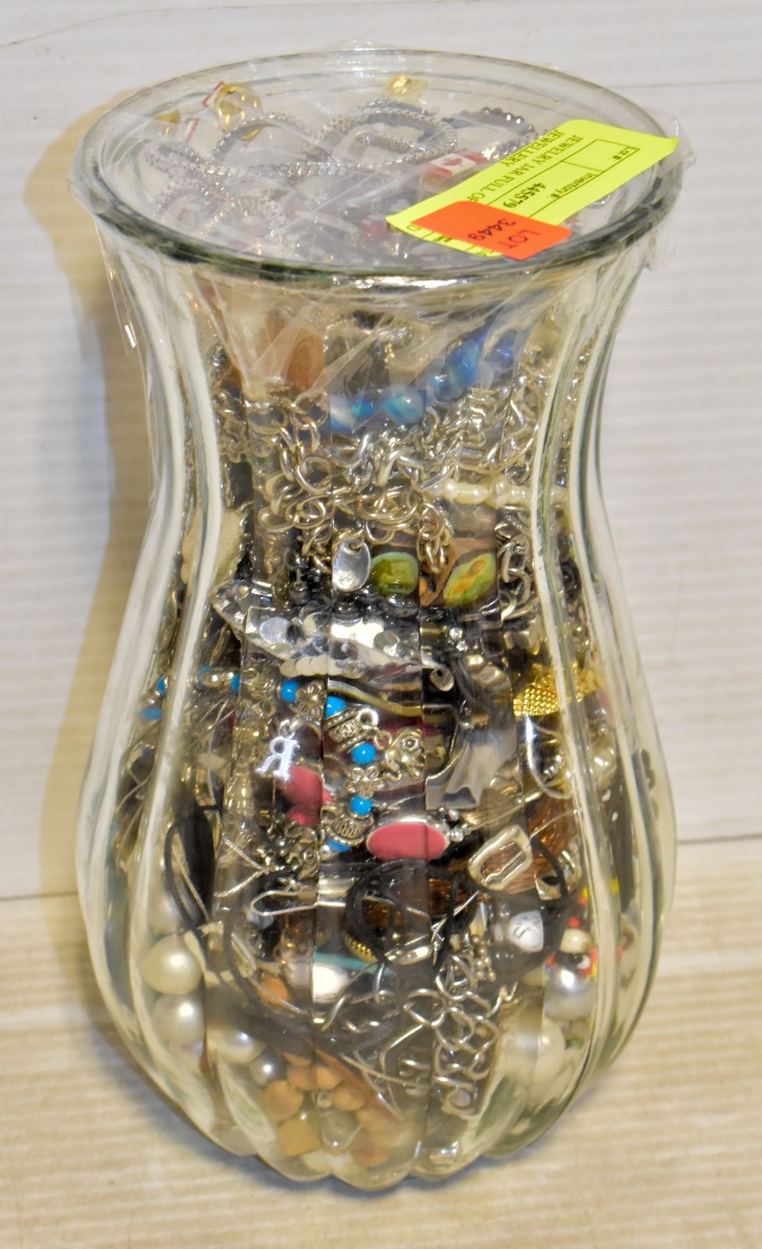 JEWELRY JAR FULL OF ASSORTED JEWELLERY