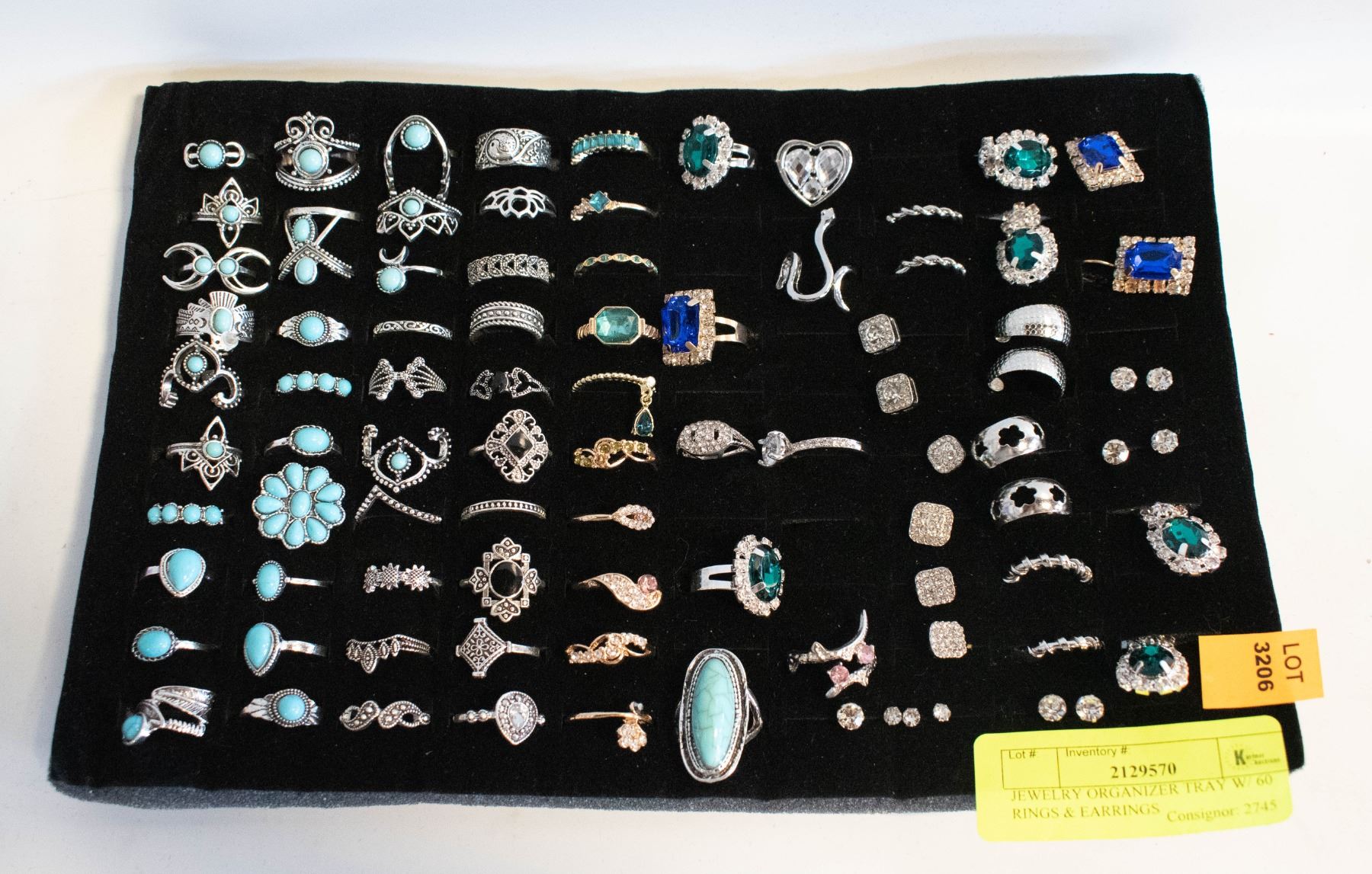 JEWELRY ORGANIZER TRAY W/ 60 RINGS & EARRINGS