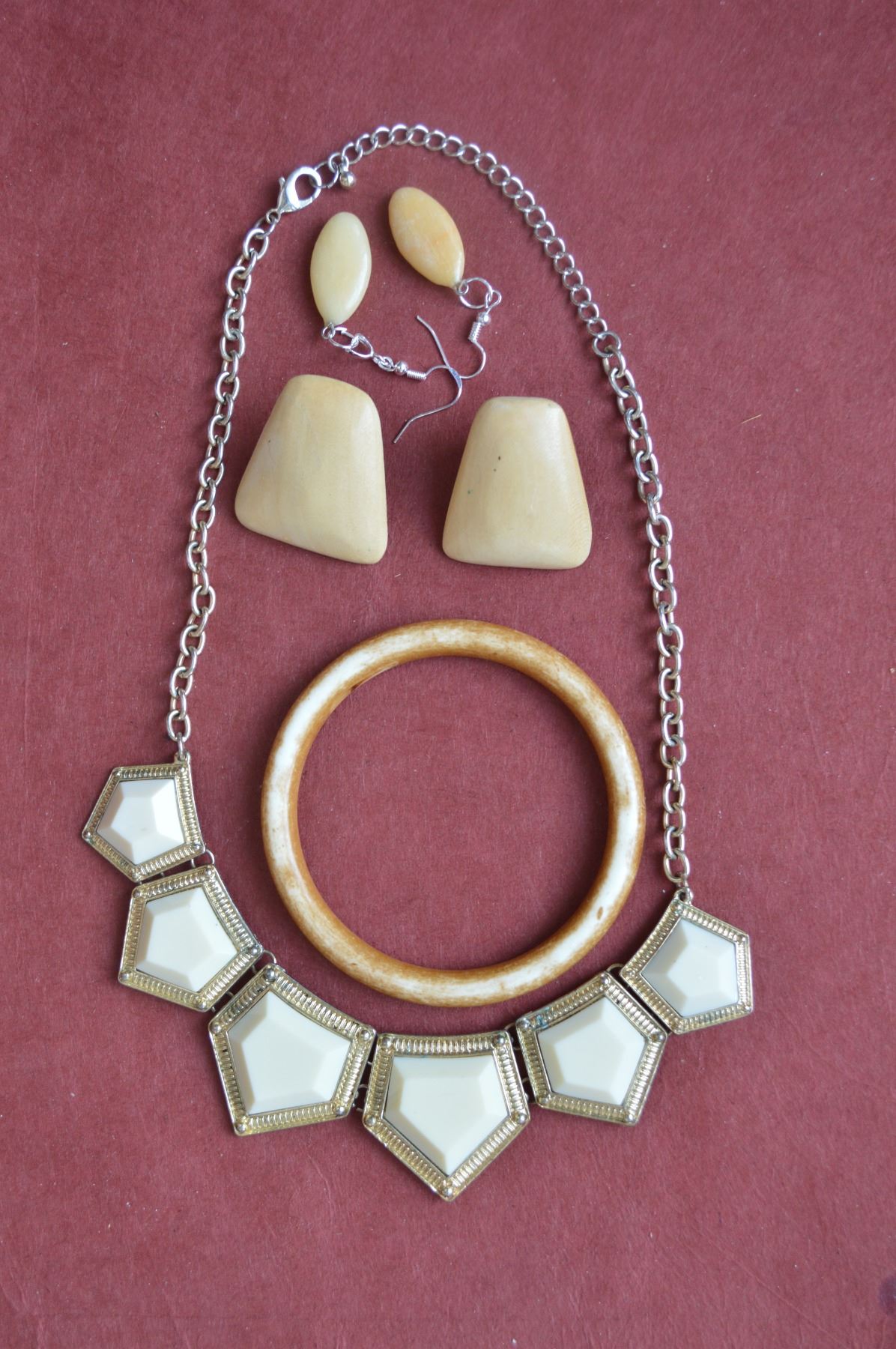 JEWELRY SET #12 - NECKLACE, BRACELET, AND EARRINGS (CLIP EARINGS & PIERCE EARRINGS). THESE ARE CLASSIC AND UNIQUE JEWELRIES. THESE ARE BEING SOLD AS IS. NO REFUNDS