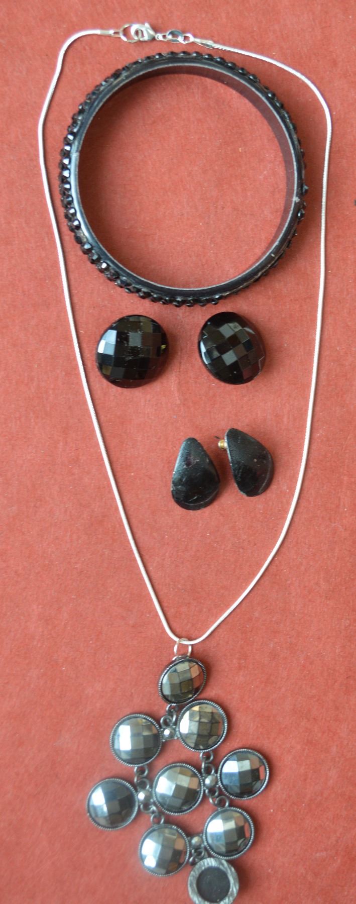 JEWELRY SET #14 - NECKLACE, BRACELET, AND EARRINGS (CLIP EARINGS & PIERCE EARRINGS). THESE ARE CLASSIC AND UNIQUE JEWELRIES. THESE ARE BEING SOLD AS IS. NO REFUNDS