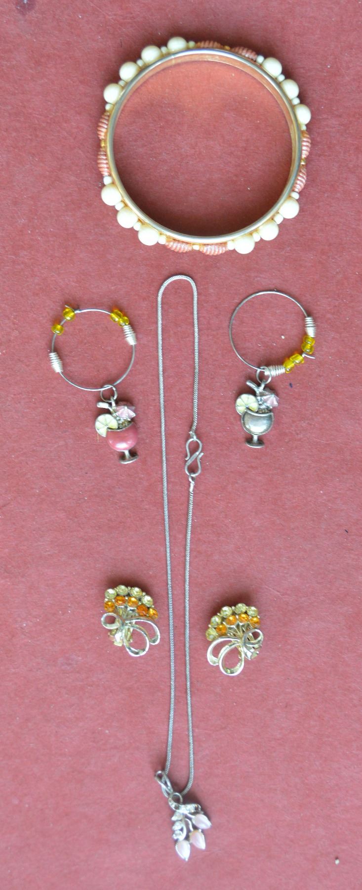 JEWELRY SET #20 - NECKLACE, BRACELET, AND EARRINGS (CLIP EARINGS & PIERCE EARRINGS). THESE ARE CLASSIC AND UNIQUE JEWELRIES. THESE ARE BEING SOLD AS IS. NO REFUNDS