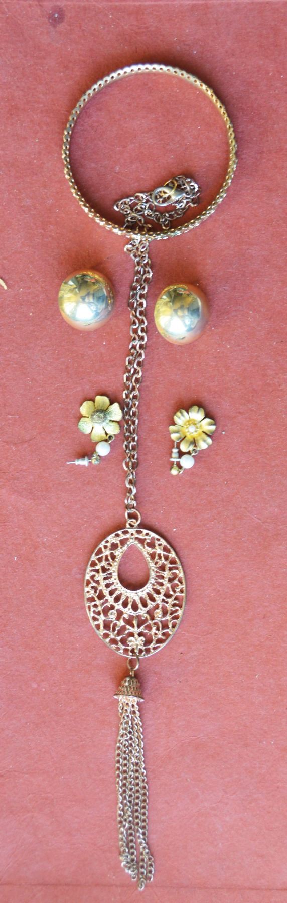 JEWELRY SET #29 - NECKLACE, BRACELET, AND EARRINGS (CLIP EARINGS & PIERCE EARRINGS). THESE ARE CLASSIC AND UNIQUE JEWELRIES. THESE ARE BEING SOLD AS IS. NO REFUNDS