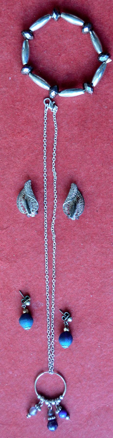 JEWELRY SET #43 - NECKLACE, BRACELET, AND EARRINGS (CLIP EARINGS & PIERCE EARRINGS). THESE ARE CLASSIC AND UNIQUE JEWELRIES. THESE ARE BEING SOLD AS IS. NO REFUNDS