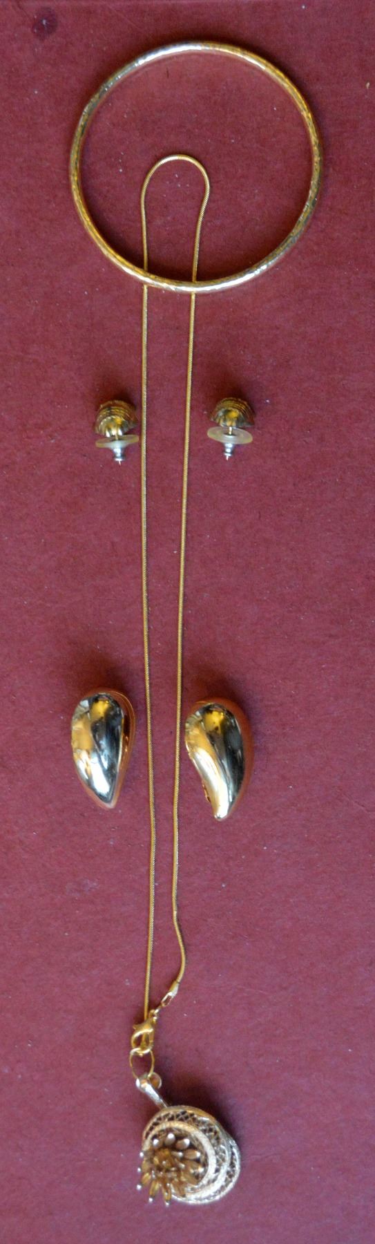 JEWELRY SET #49 - NECKLACE, BRACELET, AND EARRINGS (CLIP EARINGS & PIERCE EARRINGS). THESE ARE CLASSIC AND UNIQUE JEWELRIES. THESE ARE BEING SOLD AS IS. NO REFUNDS