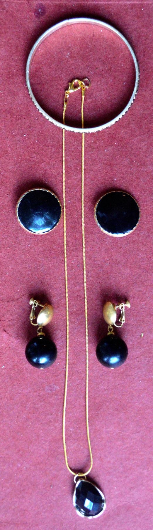 JEWELRY SET #54 - NECKLACE, BRACELET, AND EARRINGS (CLIP EARINGS & PIERCE EARRINGS). THESE ARE CLASSIC AND UNIQUE JEWELRIES. THESE ARE BEING SOLD AS IS. NO REFUNDS