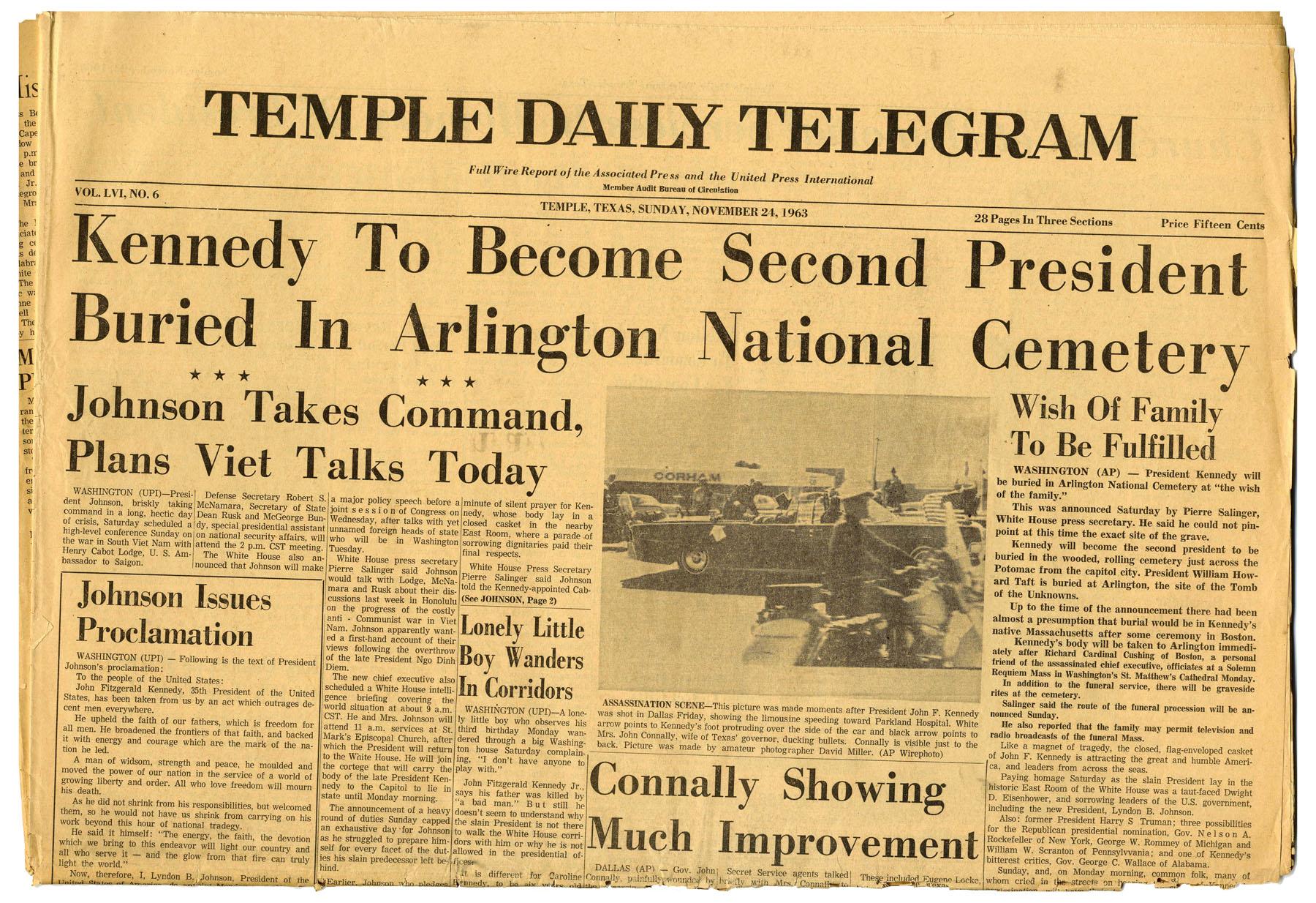 "Temple Daily Telegram" 24 November 1963 Issue -- With News of JFK's Burial Plans at Arlington Cemetery & Condition of Connally