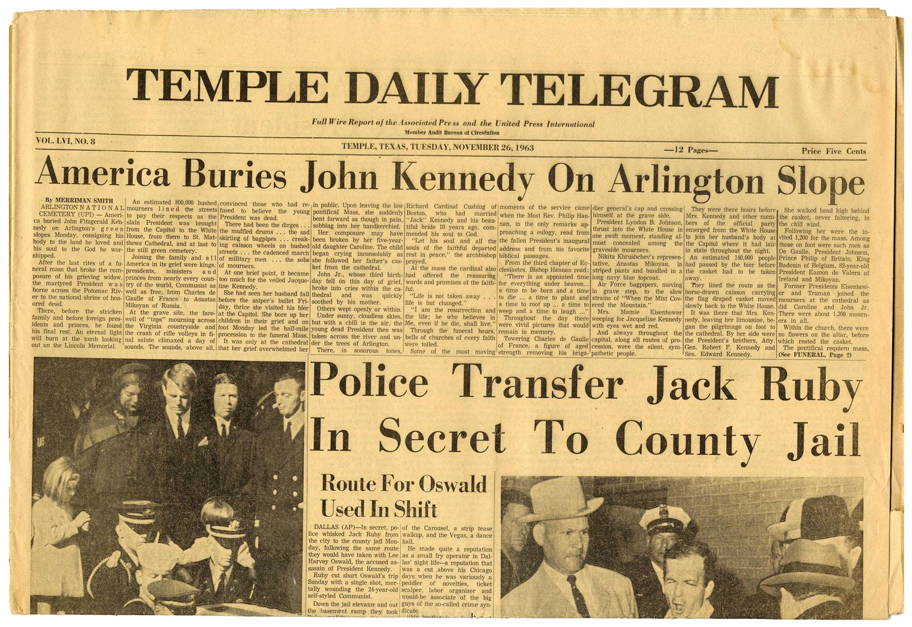 Rare "Temple Daily Telegram" 26 November 1963 Full Issue -- With News of JFK's Funeral & Photo of Jack Ruby Shooting Oswald