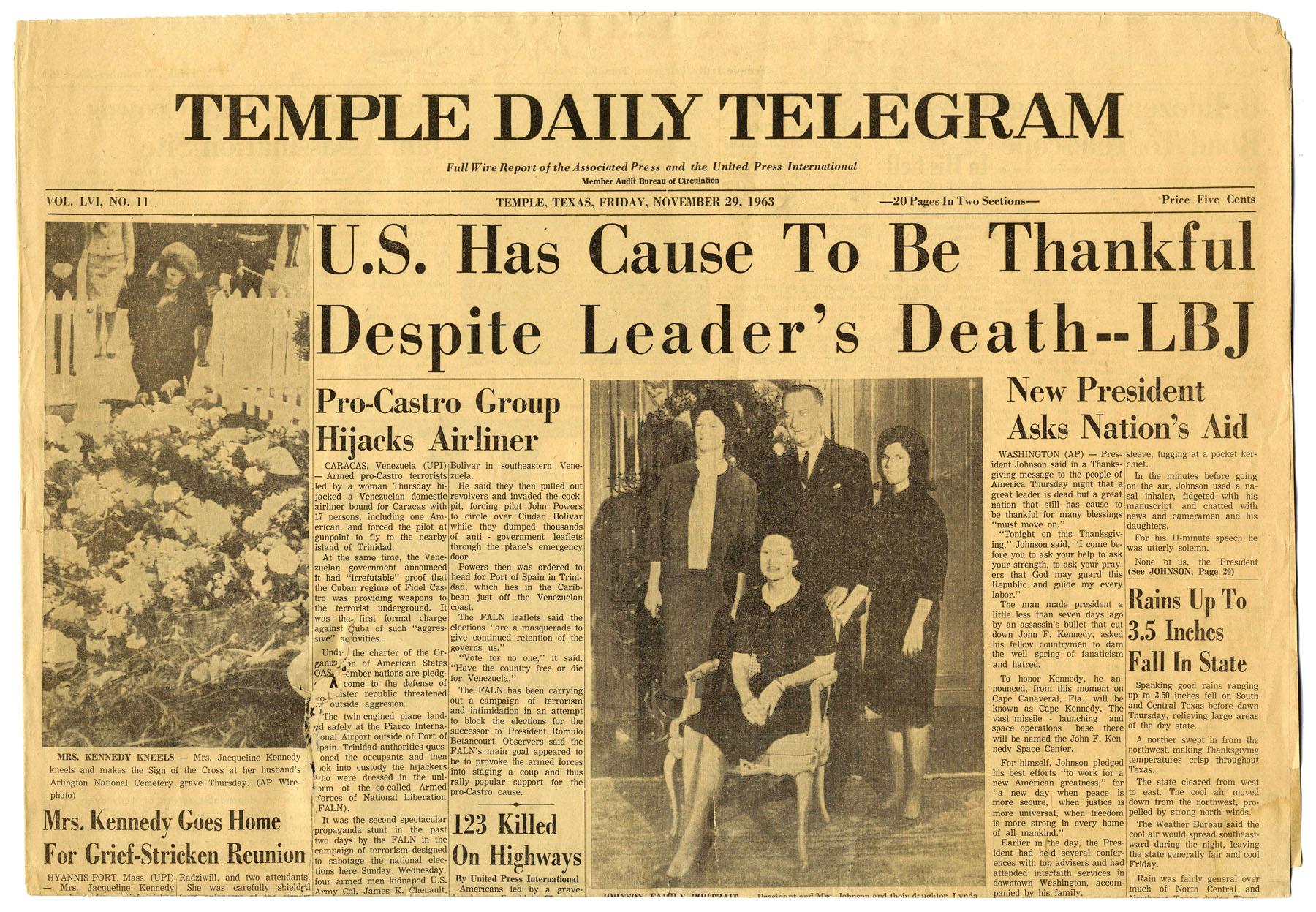 "Temple Daily Telegram" 29 November 1963 Issue -- With a Photo of the Johnson Family in the White House After JFK's Assassination