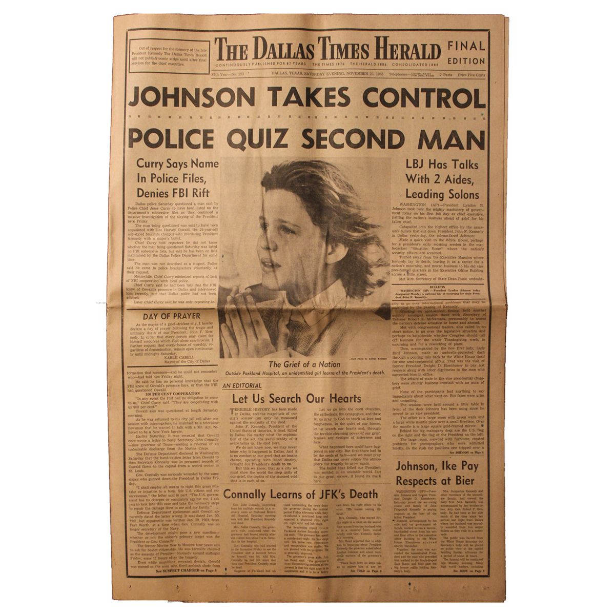 Rare ''Dallas Times Herald'' 23 November 1963 Issue -- Detailing JFK's Death & Oswald Case Developments