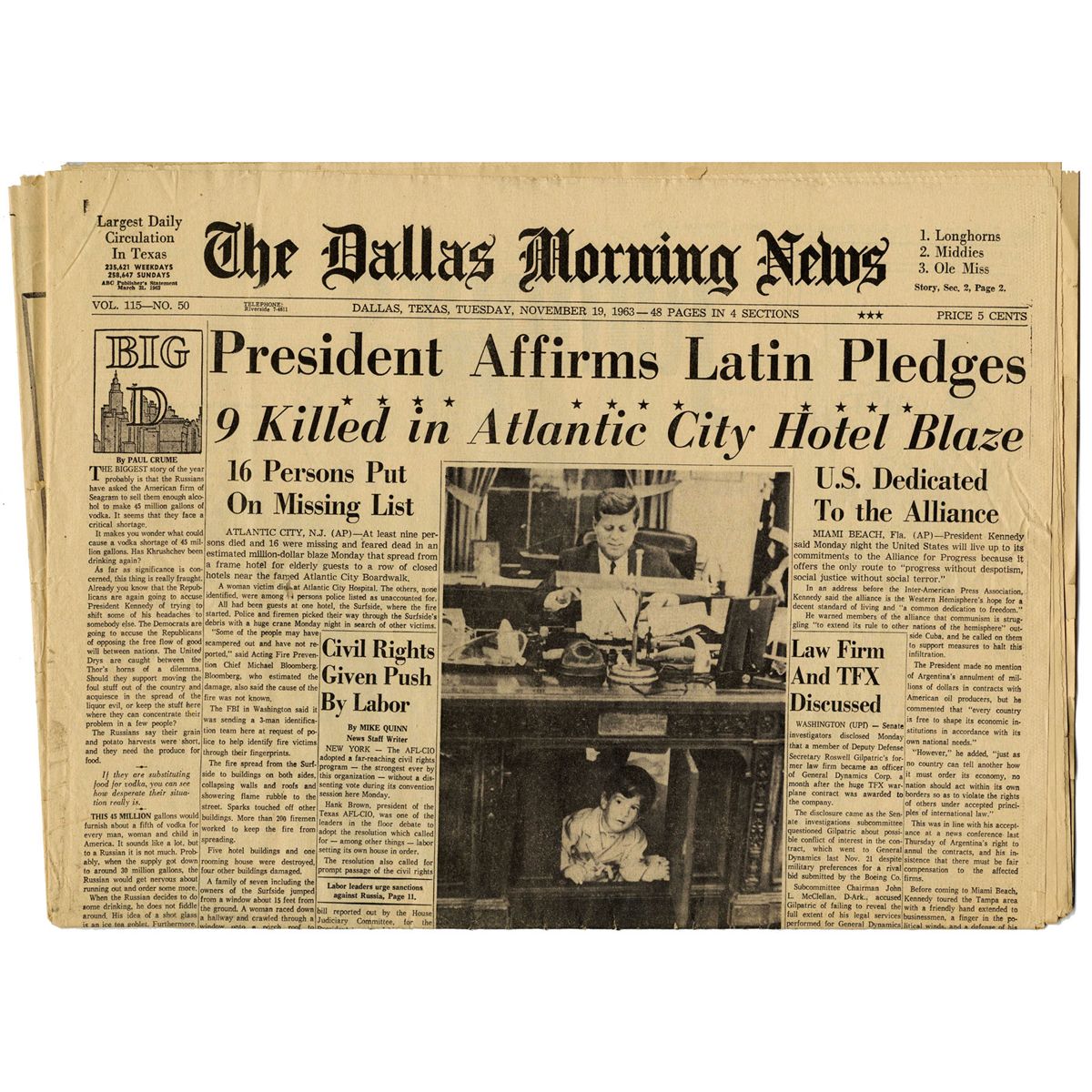''Dallas Morning News'' 19 November 1963 Issue -- Tells of JFK's Upcoming Trip to Dallas -- With Photo of John Jr. in the Oval Office