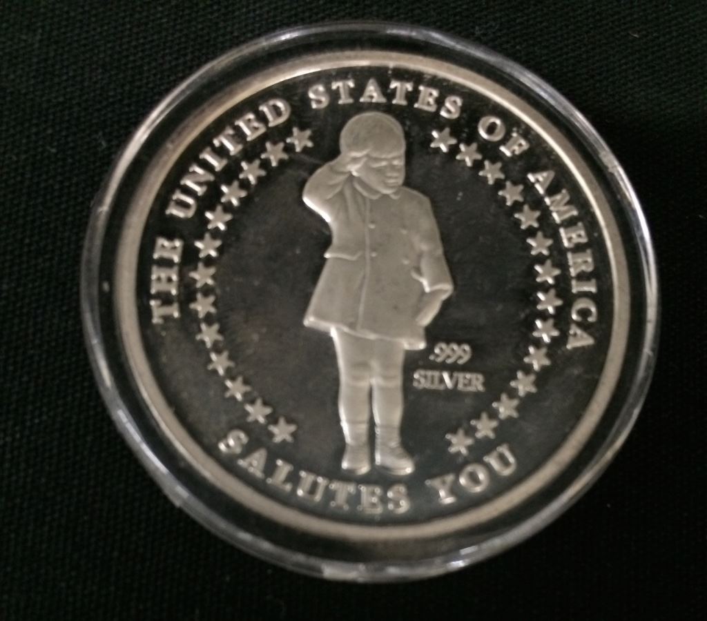 JFK, The United States Salutes You (1960-1999) .999 Silver 1 troy oz. coin. In uncirculated condition as far as we can tell. Still in its protective case. Please look closely at pics. Shipping: There will be a $5 handling / packaging fee for shipping this lot. The actual cost of postage will be added on top of that.