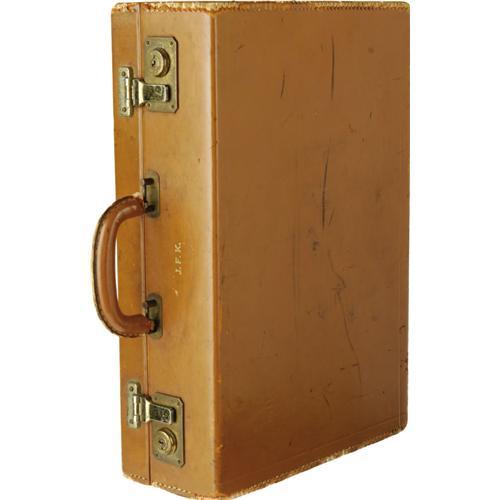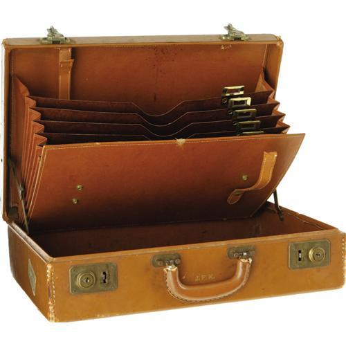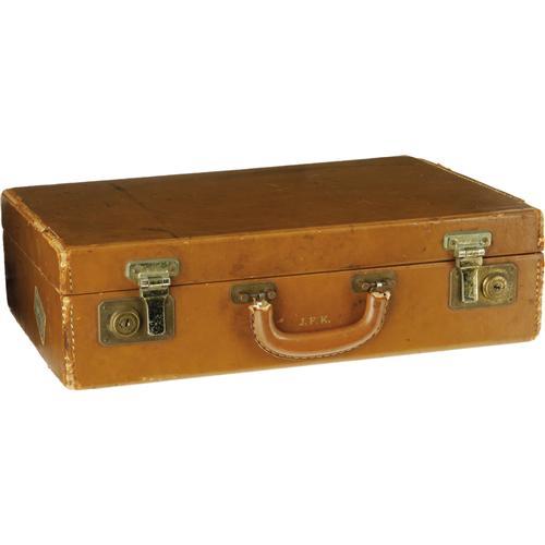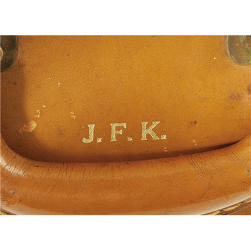 <B>The Briefcase Purchased by Jacqueline Bouvier as a Wedding Present for her Husband-to-Be John F. Kennedy.</B></I> Without a doubt, one of the most important and exciting pieces of JFK memorabilia to ever be offered to the public. <BR><BR>It was early 1952. A well-educated and traveled young New York Society woman, a former "Debutante of the Year", was working as a photographer for the <I>Washington Times-Herald.</B></I> She would ask people on the street their opinions on various subjects, take their photograph, and write it up for her "Inquiring Photographer" column in the paper. In the course of this occupation, she met, one fateful day, a young liberal Democratic congressman (soon to be senator) from Massachusetts, one of the "rising stars" of the party, not to mention one of the most eligible young bachelors in Washington, D.C. Their romance blossomed slowly- after all she was engaged to a stockbroker and planning a June 1952 wedding at the time of their meeting. On September 12, 1953, the couple was married at St. Mary's Church in Newport, Rhode Island with a reception afterwards at Hammersmith Farm, a place full of happy childhood memories for her. She probably fretted as to what to give this wealthy war hero and politician as a wedding present, finally deciding upon a handsome tan leather attaché made by Crouch & Fitzgerald of New York. It had been featured in their 1952 catalogue and she likely purchased it in the Madison Avenue store where her family had long shopped. His now-legendary initials "JFK" were monogrammed in gold under the handle. It was a gift that the groom would appreciate and use for the rest of his foreshortened life. This couple, of course, was Jacqueline Lee Bouvier and John Fitzgerald Kennedy; their marriage ceremony signaled the beginning of "Camelot." In Arthurian legend, Camelot was the capital of King Arthur's kingdom; truth and goodness and beauty